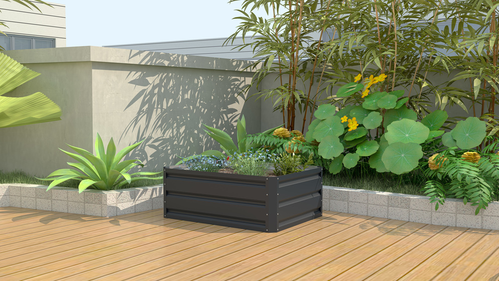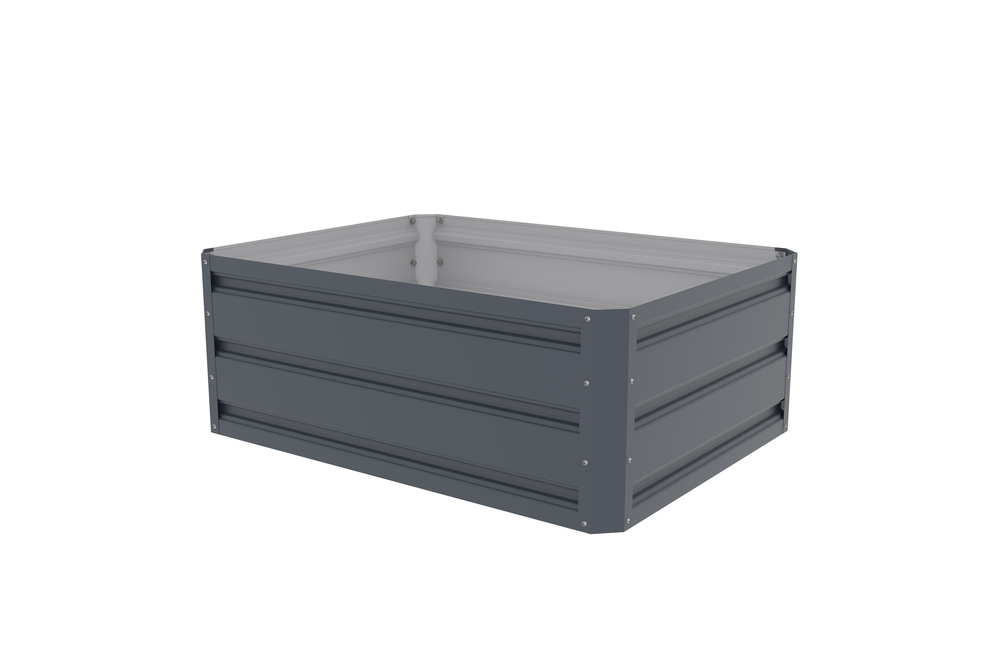 Praktična uzdignuta gredica od pocinčanog čelika omogućava jednostavnu montažu i trajnu upotrebu u vrtu. Otvoreni dizajn bez poda prilagođava se različitim terenim i sadnjama, dok minimalistički sivi završetak pristaje svakom okruženju.