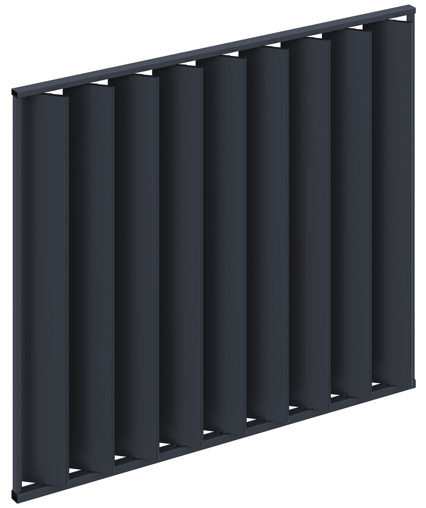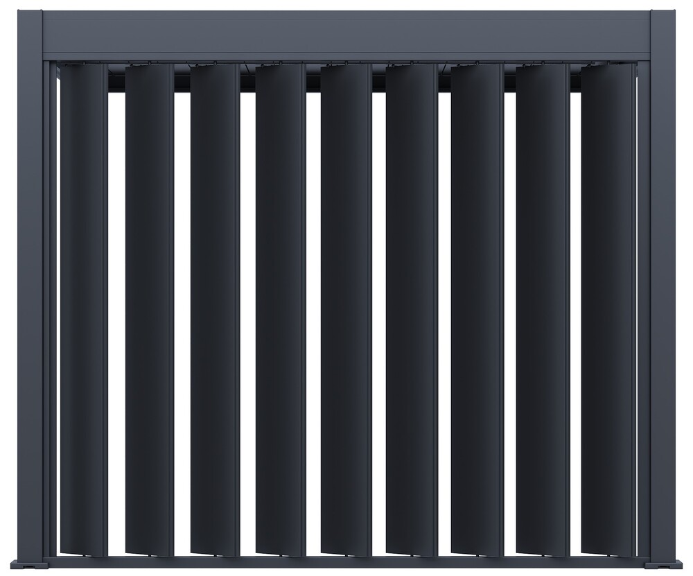 Vrhunski vertikalni sjenčani zid (3 m) s pokretnim lamelama za bioklimatske pergole, izrađen od visokokvalitetnog aluminija u mat antracitnoj boji (RAL 7016). Lamele omogućuju proizvoljno podešavanje nagiba, što nudi potpunu kontrolu nad sjenčenjem, privatnošću i protokom zraka po cijeloj visini vašeg vanjskog prostora.